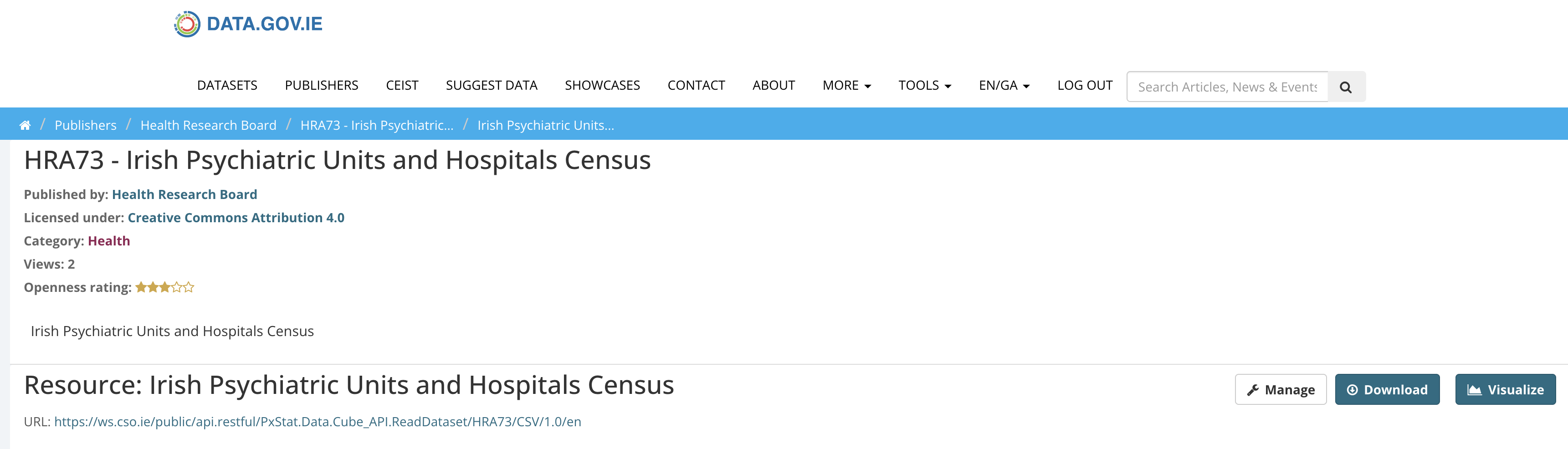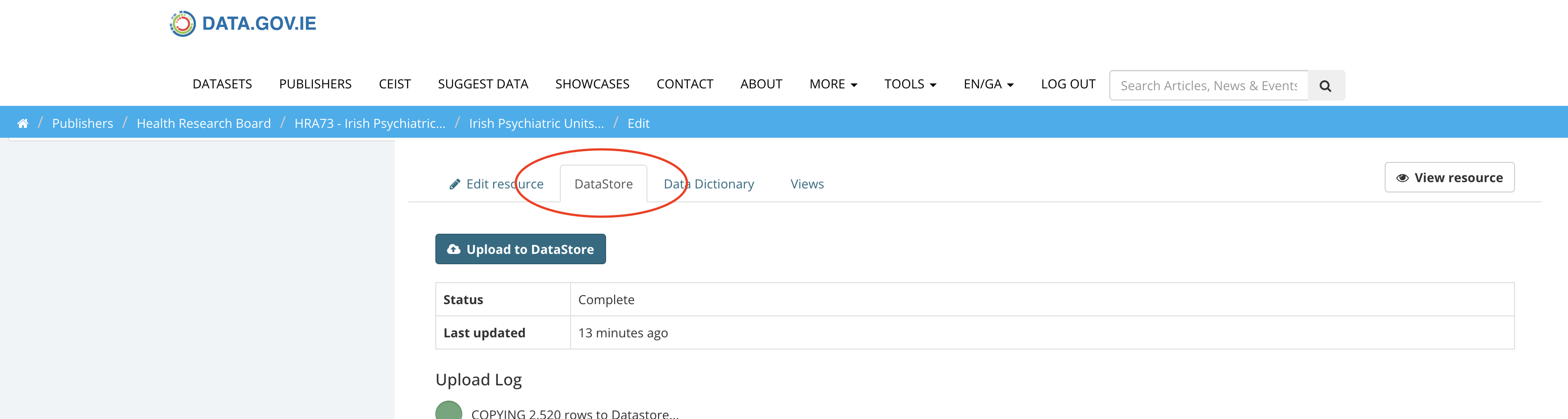 If there’s no Visualise button yet, the Resource needs to first be put into the Datastore. Go to “Manage” then the Datastore tab. (Image 2)